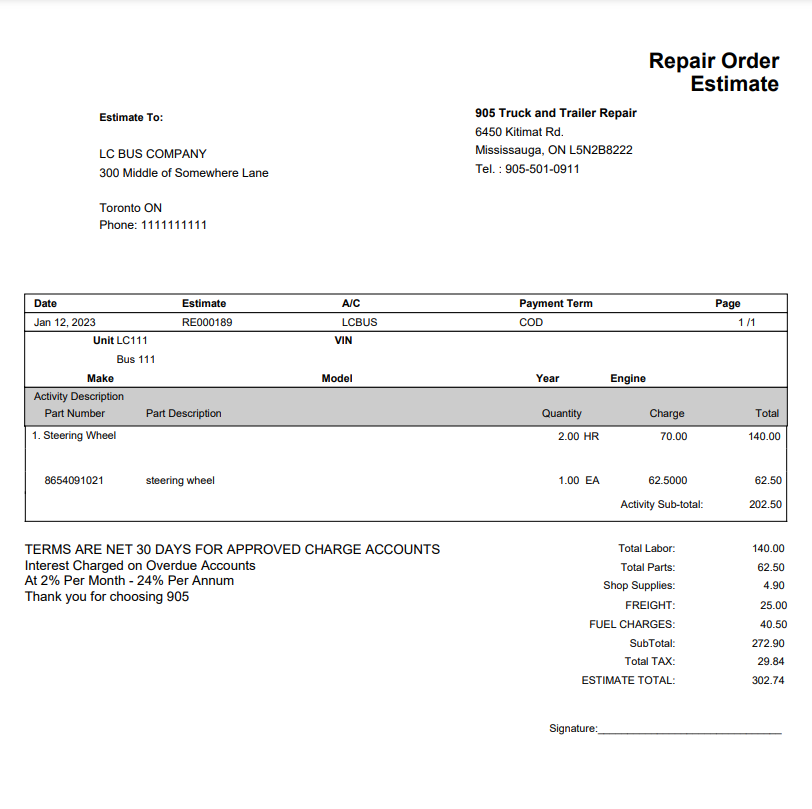 If you want to include parts with the estimate, select the appropriate labor activity on the left hand side, then click Add Parts.