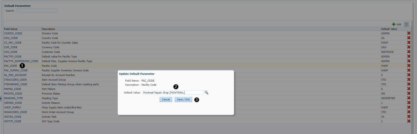 In the previous example, we set the FAC_CODE to SHOP, however, we would now like our users by default to sign into the 'Montreal' location.