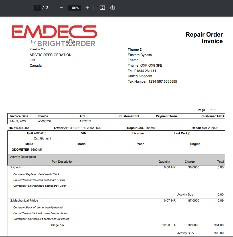 The shop can then complete the Job and invoice out the Work Order Invoice