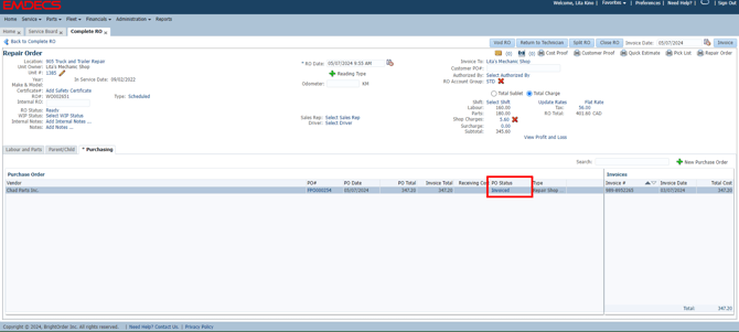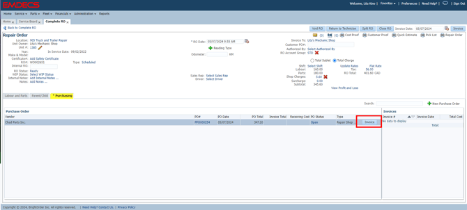The Invoice button can now be seen either under the Purchasing Tab