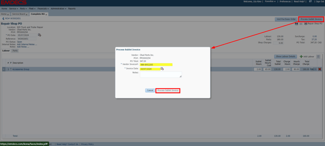 Sublets that are $0 can not be processed. The Invoice button will not appear on the Sublet until there is a PO Total.