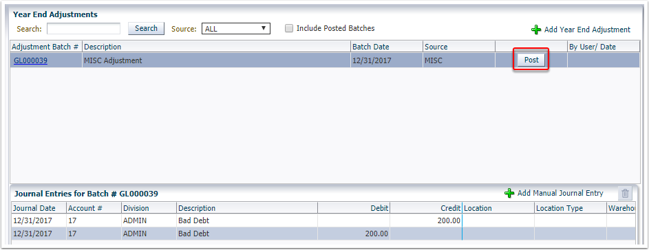 - When you are done adding manual journal entries to the adjustment batch, click Post.