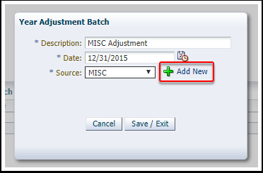 - Enter a description, date, and select a source from the drop-down list. Clicking Add New pops up a window to add new source types. Click Save / Exit to continue.